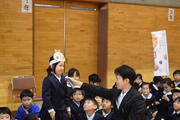 5年1組は、園児さんたちと3回目の交流会を行いました。今回は小学校で交流しました。「小学校のことを知ってほしい」「楽しい交流にしたい」という思いから、学校スタンプラリーを企画しました。校内の様々な場所に学校に関するミッションをつくり、園児さんたちが楽しみながら小学校について知ることができる工夫をしました。グループでの活動の様子を見ると、Aさんは「どこに行きたい?」等、相手の思いを引き出す声かけをしたり、Bさんはミッションのクリアに困っている様子に気づき、ヒントを出したりするなど、園児さんに寄り添う姿が見られました。次回の交流会も小学校で行います。さらに、仲が深まり、自分の成長につながる交流にしていきます。