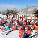 今日は、グラウンドに積もった雪で遊んだり、団ごとに協力して活動したりしました。 初めに行った雪運びリレーでは、「制限時間内にできるだけ多くの雪を運び、どの団よりも高い山を作ろう」という目当てで活動しました。どの団の子供たちも、ブルーシートにのせた雪を落とさないよう、息を合わせて走ったり、進んで声を掛け合ったりしていました。途中、雪に足をとられて転んでしまうこともありましたが、最後まで笑顔で雪を運び続ける子供たちの姿が見られました。走る順番を待つ子供たちは、「次に運ぶ雪を先に集めておくとよい」と考え、待っている間も周辺にある雪を一生懸命かき集めていました。目当てを達成するためにそれぞれができることを考え、実行する姿が素敵でした。 後半は、愛育会の皆さんが休日の間に作ってくださった雪山で思い切り遊びました。子供たちは、滑るコースや滑る人数、滑り方を変えながら、何度も雪山滑りを楽しんでいました。愛育会の皆さんのおかげで、より楽しい雪上活動になりました。ありがとうございました。