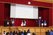 昼休みの全校集会では、給食委員会より食事の大切さや残食を少なくする方法について発表がありました。しっかり食事をとることで、元気な体をつくることができ、勉強、遊び、習い事等に集中して取り組むことができると劇を通して分かりやす教えていただいきました。子供たちは、給食をしっかり食べて、残食を少なくしようという気持ちを高めていました。