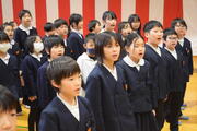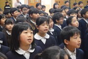 卒業式での歌「小さな勇気」の練習を1~5年生で行いました。「透き通った歌声で歌うよ」「たくさん息を吸うよ」といった指導を素直に受け止めて、歌詞に思いをのせて歌おうとする姿がたくさん見られました。