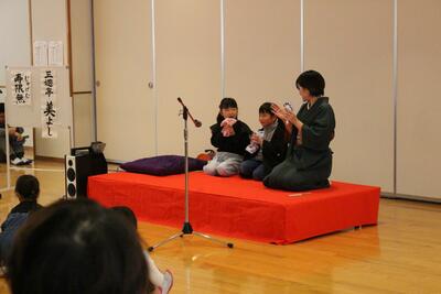 「寿限無」の高座を聞いた後の休憩時間には、「寿限無(じゅげむ) 寿限無(じゅげむ) 五劫(ごこう)のすりきれ……」と美よしさんの真似をして楽しんでいる子供たちの姿が見られました。