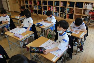 1組は算数で数の勉強をしています。今日は「0」について学習しました。この後、学習する数も少しずつ大きくなっていきます。