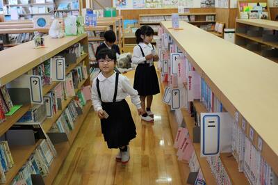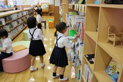 2組は図書室で本を借りている様子です。自分のお気に入りの本を探しました。読むのが楽しみですね。