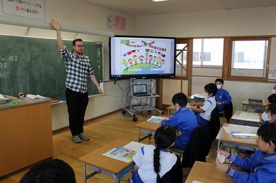 1組は外国語で、英語でのあいさつや、世界の国々の英語での言い方を復習しました。ジェームス先生と、ゲームを通して楽しく英語に親しみました。