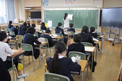3組は家庭科の様子です。朝食について学習しています。朝食にふさわしい献立や、栄養素などについて確認しました。