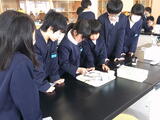 5年生の理科では、もののとけ方について学習しています。この時間は、温度によってミョウバンと食塩のとける量がどのように変化するかについて実験しました。子供たちは、温度が上がって急によく溶けるようになったミョウバンに驚いていました。2時間に渡る実験でしたが、真剣に取り組み続ける子供たちの姿が印象的でした。