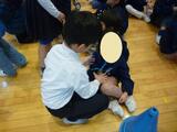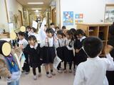始まる前は「ドキドキする」 「緊張するなあ」と言っていた子供たちでしたが、園児がやって来ると「一緒に行こう」 「こっちだよ、おいで。」と声をかけたり、手を繫いだりして案内しており、お兄さん、お姉さんらしい姿を見せてくれました。