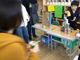 学習参観の日におもちゃパーティーを開きました。この日に向けて、風やゴム等の力を使ったおもちゃを作ったり、そのおもちゃを楽しんでもらうための工夫を考えたりしてきました。この日は、お客さんを相手に、「ここにあるおもちゃから、どのおもちゃを使って遊ぶか選んでください」「ここまで進んだら100点ですよ」と、自分たちで考えていた説明を話していました。また、お客さんの様子に合わせて、「もう少し近くからブーメランを投げていいですよ」などと、声かけをしている姿も見られ、成長を感じました。たくさんのお家の方に来ていただいたことで、大変充実したおもちゃパーティーになりました。ありがとうございました。