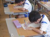 3組は、今年最初の漢字テストをしました。毎日の学習では「むずかしいね」「よく見て書かないと」と丁寧に練習をしている子供たち。不安が残る中のテストではありましたが、一字一字丁寧に書き、何度も書き直していました。終わると「思ったよりも書けたよ」「もう少し練習したほうがいいことがわかった」と次回のテストに向けて切り替えている人もいました。