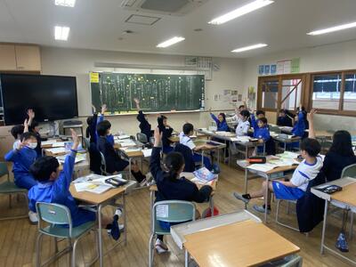 4年生は「白いぼうし」の学習をしています。今日は子供から出た「女の子が急に車から消えたのはなぜだろう」「女の子は松井さんが助けたちょうだったのかな」という疑問について話し合いました。