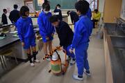 6年生 てこの力で、重りを持ち上げよう! 投稿: 立山中央01 (11/07) 6年生は、「てこのしくみとはたらき」の学習を進めています。今日は、片手では持ち上げることが難しい重りを「てこ実験器」を使って持ち上げてみました。グループごとに試す中で、「重りの位置を支点に近づけると、手ごたえが小さくなった感じがするよ」「力点を支点に近づけると、全然持ち上がらないよ」など、てこのきまりに気付き始めた子供たちでした。 Tweet -