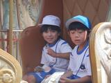 ミラージュランドでは、ペアの友達と仲良くアトラクションに乗りました。どの子もきらきらの笑顔で楽しんでいました。