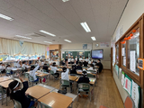 木曜日のお昼に、特別なお客さんが立山中央小学校に来ました。それは、獅子舞!