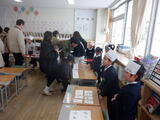 3組は、生活科「むかしのあそび」と国語「3組ショッピングモール」をしました。生活では、自分で決めた遊びの名人の目指してお家の方と協力しながら技を練習しました。「今日初めてできるようになったよ」「お父さんに教えてもらった」と子供同士でなくお家の方と協力していました。友達のお家の方に声をかけて一緒にしている姿もあり、自分から声をかける力が付いているなと感じました。国語では自分たちが決めた仲間に入る商品を準備して、店員となり元気に声をかけてお家の方に売っていました。振り返りでは、「人気商品はさつまいもうどんでした」「こえかけを変えたらもっと売れたかもしれない」と、ただ売るだけでなく考えながら売っていることがわかりました。協力していただいた保護者のみなさん、ありがとうございました。