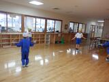 今日は天候が悪く、グラウンドで走ることができなかった3組のこどもたちは「天気が悪いなら、縄跳びの練習をしたい」「新しい技をもっと練習したい」と縄跳び練習を提案しました。そこで、連続前跳びの記録とりと、1分間前跳びの記録とりをしました。連続前跳びでは、800回以上跳ぶことができる友達の跳び方を見ながら「手がずっと同じ位置だと安定するんだね」「〇〇君はずっと同じところを見て跳んでいるよ」と、いいところを真似しながら練習していました。最後には、前跳び勝ち残り大会を行い、『最後まで引っ掛からずに跳ぶことができるのはだれか』をしました。疲れても最後まで頑張る姿、その友達を全力で応援する姿が素晴らしかったです。