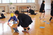 今日の体育はグラウンドで行いました。3月に入り、来年度の準備が始まります。来年度の色団を決めるための、100m走に向けた授業を行いました。グラウンドを自由に走るアップを行った後、さまざまなスタートの姿勢から走り出しました。最後に100mを走ってみると「思ったよりも遠い」「終わったと思ったらまだ半分だった」とつぶやきながらも、何度も練習する姿がありました。