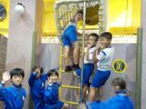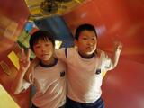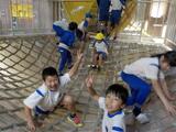 午後は太閤山ランドの「こどもみらいかん」に行きました。施設のルールやマナーを意識しながら友達と弁当を食べたり、遊具で遊んだりしました。「こっち行こうよ!」「網に落ちないようにしよう」「先生こっちだよ!がんばって!」と友達や先生と一緒に思い切り遊びました。