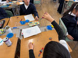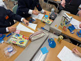 3年生の理科では、磁石に引き付けられて、くっつくものは何か探しています。「くぎは引き付けられそうだね」「見て!画鋲がケースに入ったまま動いている!」「電気のときみたいに、金属に磁石はくっつきそうだよ」と、子供たちは、様々な物に磁石を近づけ、引き付けられるか実験していました。これまでの学習と結び付けながら考える子供の姿も見られました。