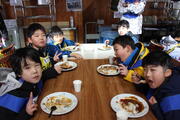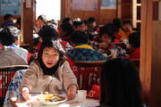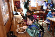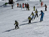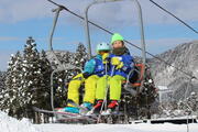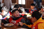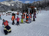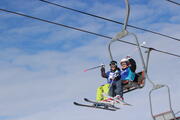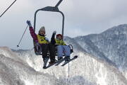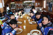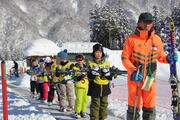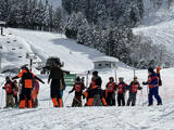 お昼ご飯を食べて、体力が回復した3年生。午後はリフトに乗って滑る子供が増えています。