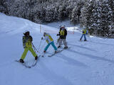 初めてのスキーとなった子供が多いですが、天候にも恵まれ、楽しんで滑っていました。初めは転んでしまうことも多かったですが、「ゆっくりでいいよ。がんばれ!」「その調子!」「やったぁ!」と、友達同士で声をかけながら、一緒に上達しようとする様子も多く見られました。