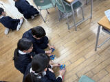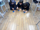 理科の学習の様子です。これまでに磁石の学習をしてきた3年生。今日は学んできた磁石の性質を使った遊びをしました。「磁石は鉄を引き付ける性質」や「同じ極を近づけると、退け合う性質」を使うことで、様々な遊びを考えて取り組みました。