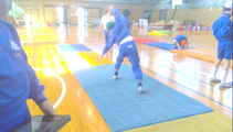 マット運動の様子です。今までに学習してきた技を3つ続けて演技をすることを練習しました。「自信があるから前転の技は入れよう」「前転をした後に開脚前転を組み合わせたいな」「僕は倒立ができるようになったし、側方倒立回転(側転)も入れるぞ!」と、技をどのように組み合わせるかを考えながら練習に取り組みました。