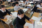 在校生は、6年生に感謝の気持ちを伝えるために、卒業式での歌の練習を行いました。口の開け方や歌う姿勢、発声のポイントを意識して、歌詞に気持ちをのせて歌おうとしていました。礼をする、背筋を伸ばして座る等、一つ一つの行動を丁寧に行い、よりよい卒業式になるように頑張っていました。