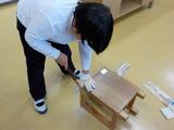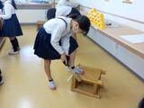 図工の時間に、のこぎりを使って板や棒を切りました。のこぎりを初めて使う子供がほとんどだったため、初めは「なかなか切れないよ」「腕をたくさん動かすから、疲れた~」と困っていた子供たち。しかし、慣れてくると夢中でのこぎりを使う姿が見られました。木を切る感触のおもしろさを感じたり、切り終えた木の断面に興味をもったりするなど、思い思いに図工の楽しさを味わいました。