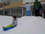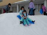 後半は、愛育会の皆さんが休日の間に作ってくださった雪山で思い切り遊びました。子供たちは、滑るコースや滑る人数、滑り方を変えながら、何度も雪山滑りを楽しんでいました。愛育会の皆さんのおかげで、より楽しい雪上活動になりました。ありがとうございました。