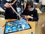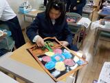 図工の時間に取り組んでいたステンシル版画が完成しました。カッターで切った型紙の上から、スポンジと絵の具を使って色を塗り、色の組み合わせや塗り方を工夫して描きました。最後に画用紙から型紙を外すと、「すごくきれい」「芸術作品みたいだよ」と、子供たちから歓声があがりました。なかでもAくんは「色を塗るのが大変だったけど、がんばってよかった」とつぶやいていました。型紙づくりの際に、Aくんはカッターで細かい模様を黙々と切り続けていました。そんな自分の取り組み方を振り返り、達成感を感じているようでした。