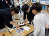 6年生は、「てこのしくみとはたらき」の学習を進めています。今日は、片手では持ち上げることが難しい重りを「てこ実験器」を使って持ち上げてみました。グループごとに試す中で、「重りの位置を支点に近づけると、手ごたえが小さくなった感じがするよ」「力点を支点に近づけると、全然持ち上がらないよ」など、てこのきまりに気付き始めた子供たちでした。