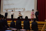 昼休みの全校集会では、給食委員会より食事の大切さや残食を少なくする方法について発表がありました。しっかり食事をとることで、元気な体をつくることができ、勉強、遊び、習い事等に集中して取り組むことができると劇を通して分かりやす教えていただいきました。子供たちは、給食をしっかり食べて、残食を少なくしようという気持ちを高めていました。