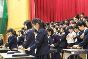 令和七年度の修了式が行われました。式に先立ち、生徒指導主事から春休みの過ごし方について、「くるま」を合言葉に話がありました。ぜひ、ご家庭でも自転車の乗り方等、心も体も健康に過ごすための過ごし方を確認してください。