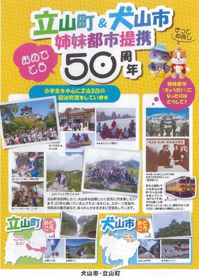 立山町と愛知県犬山市は令和5年 10 月に 姉妹都市提携 50 周年を迎えました。その節目にあたり、 両市町の小中学生に姉妹都市についての意識の 高揚 を図り、交流を促進する ことを目的に、観光ポスター・記念ポスターを作成しました。校内にに掲示するものをHP上でも公開します。ぜひご覧ください。